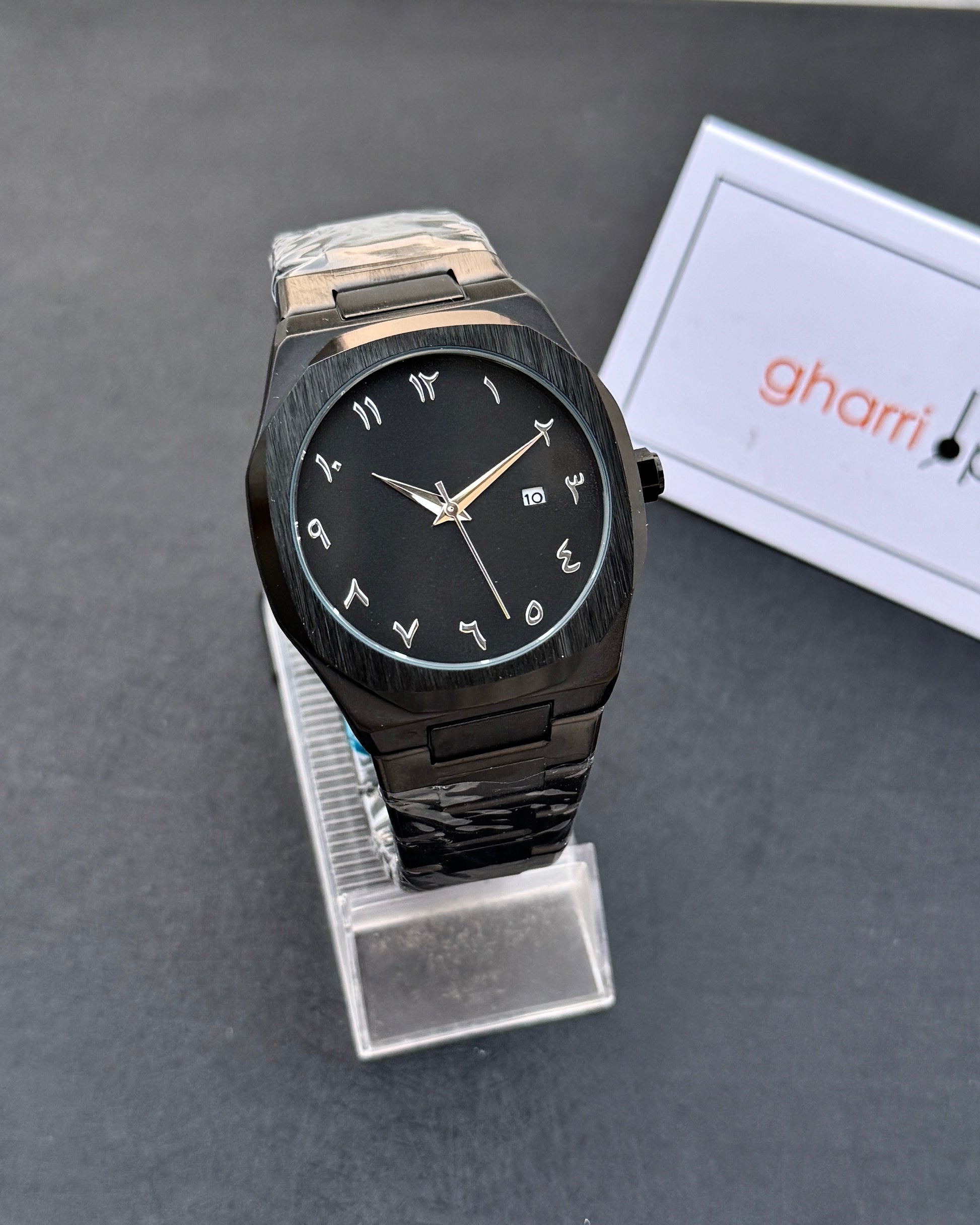 Arabic Edition Black Aura with Date - Ultra High Quality Stainless Steel Heavy Weight Edition (+150gm)